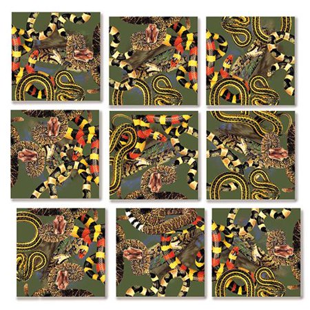 The object of the scramble squares puzzle game is to arrange the nine colorfully illustrated square pieces into a 12 x 12 square so that the realistic graphics on the pieces & edges match perfectly to form a completed design in every direction.